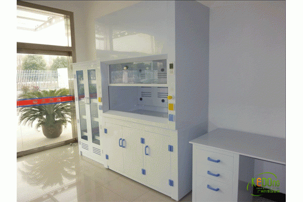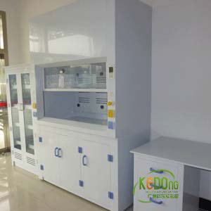 整体结构:三段式组合柜体,上部通风柜、中部操作台面、下部底柜(独立水、电、气管线系统),三段式倒流设计,无死角,能有效排除废气毒气。